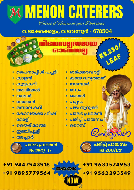 Caterers, Vadavannur, Ph 9447943916 / 9633574963 |