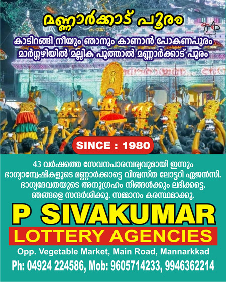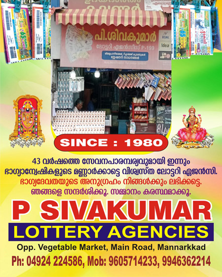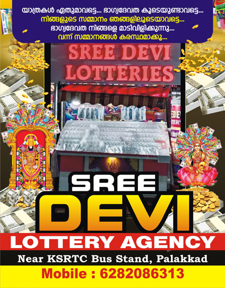 SREE VENKTESHWARA LOTTERY AGENCY, OPP. K.S.R.T.C. BUS STAND, PALAKKAD |