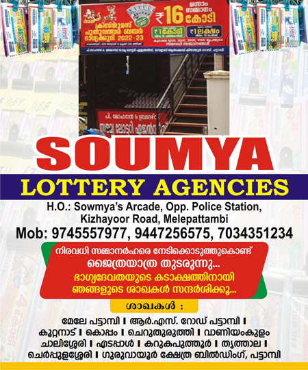SOWBHAGYA LOTTERY AGENCY, MALAMPUZHA ROAD OLAVAKKODE |