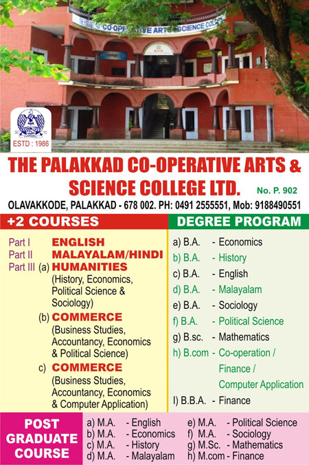 Palakkad Co-operative Arts & Science College, Olavakkode (PO)